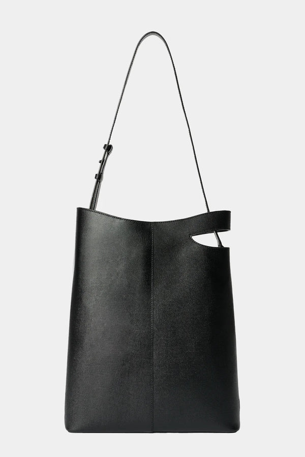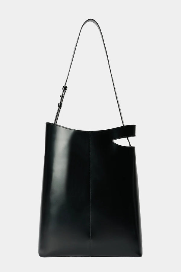Big tote bag with asymmetrical opening in leather.- Signature asymmetrical opening- LGN logo embossed on edge- LGN logo embossed on shoulder strap- Adjustable shoulder strap- Inside zipped pocket- Interior fabric...