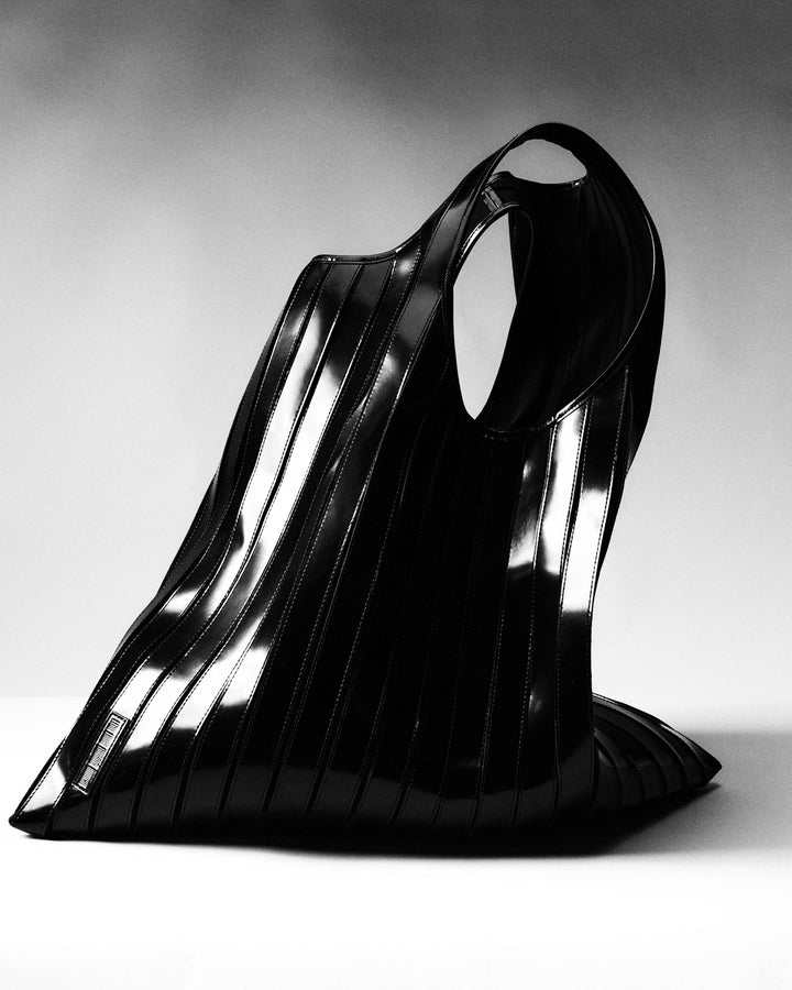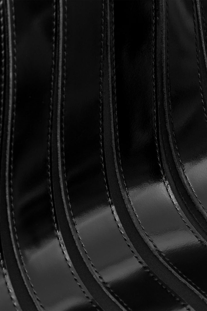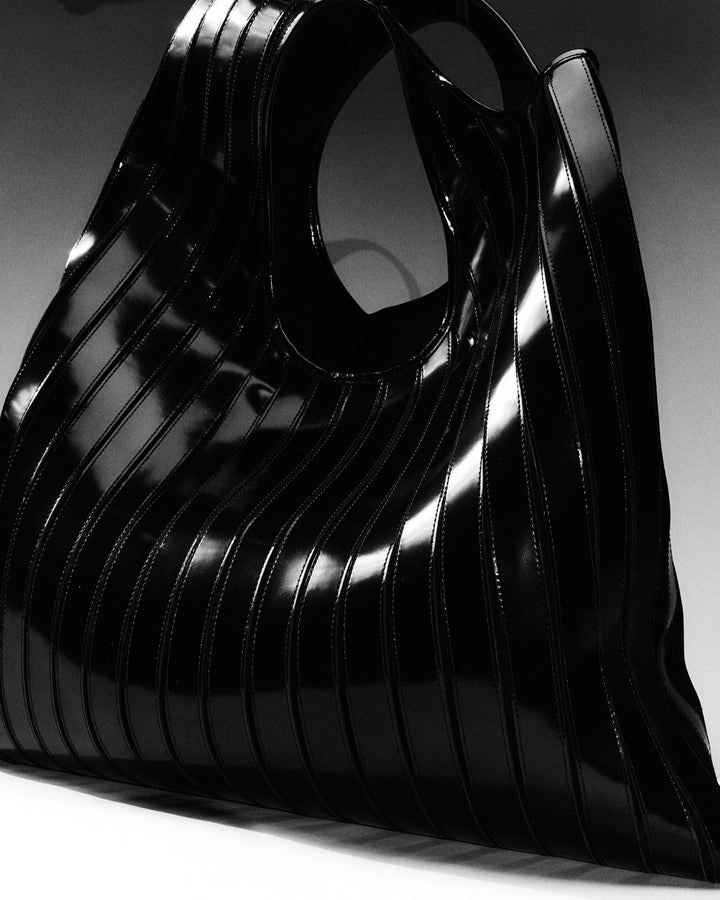 Sac besace minimal en bande de cuir appliqué sur une base de jersey pour un effet stretch.