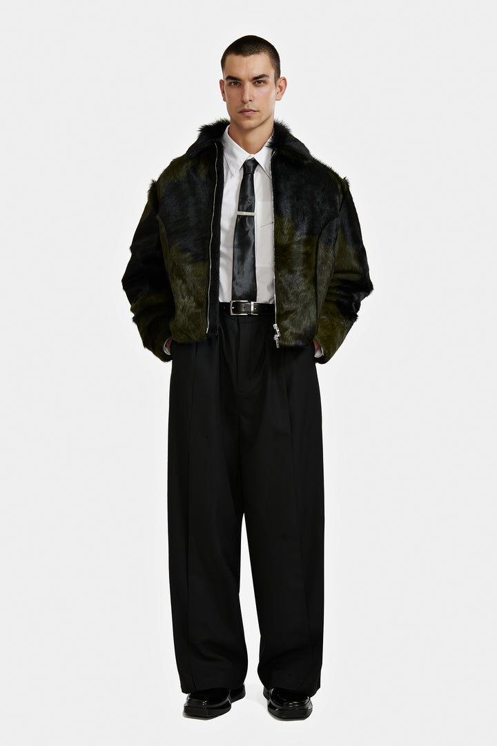 BLOUSON PADDÉ EN CUIR À POILS COURT