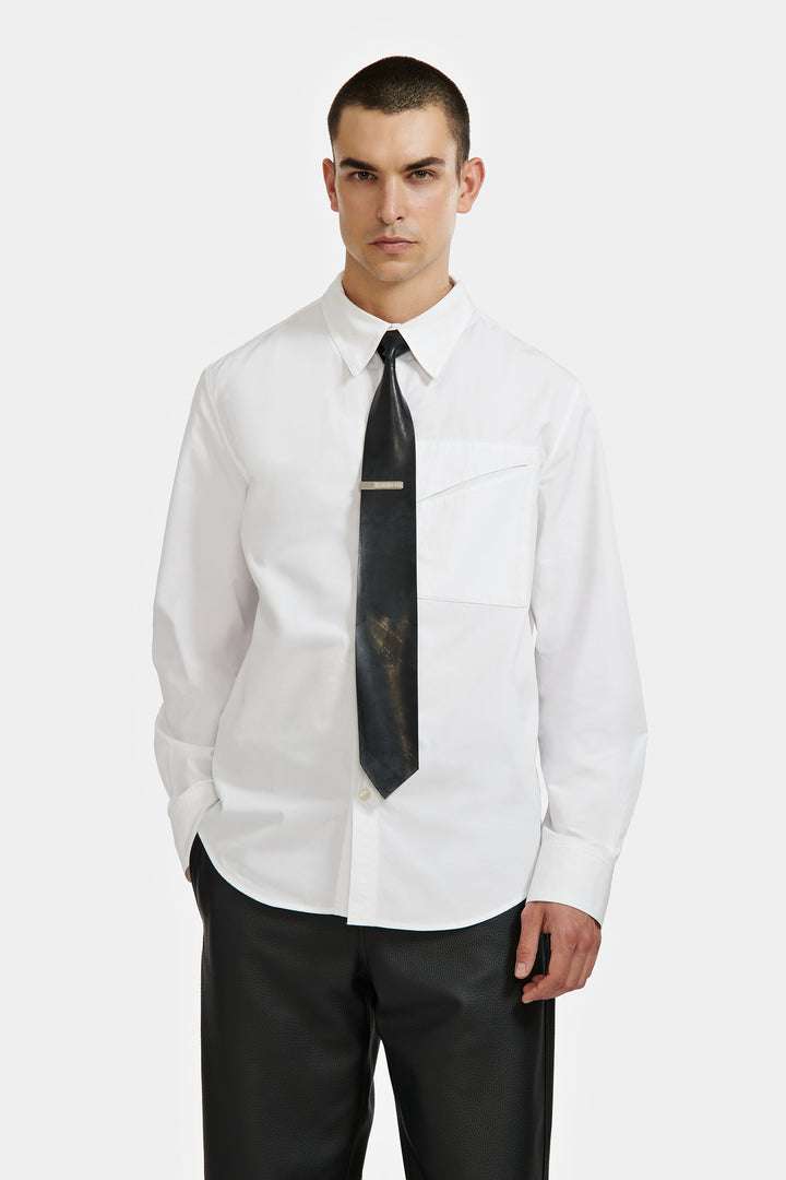 Chemise à coupe regular confectionné en popeline de coton blanc.