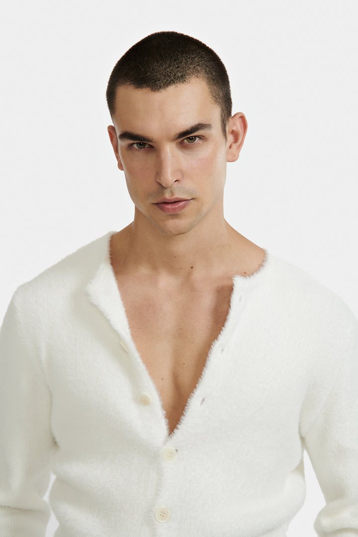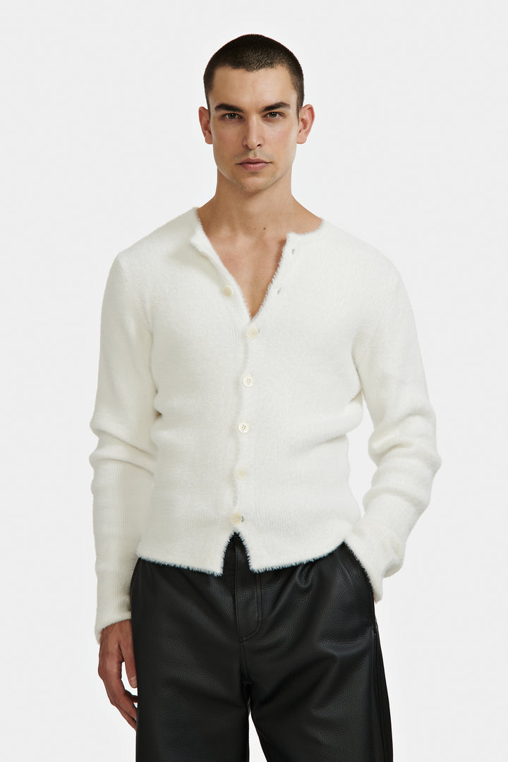 Cardigan en maille duveteuse.