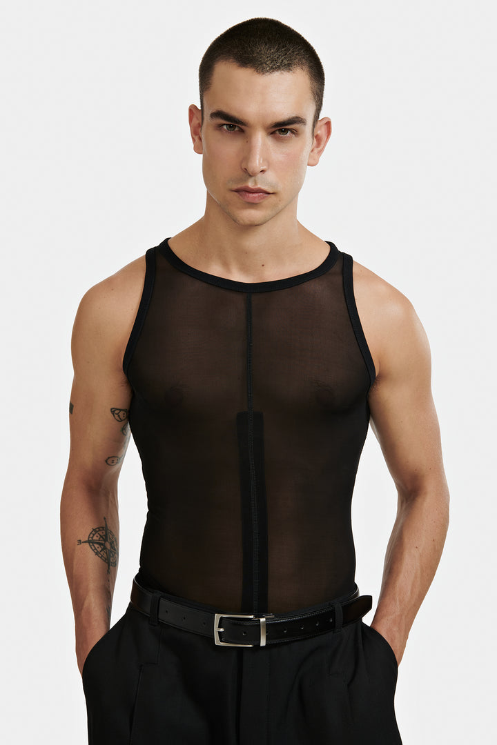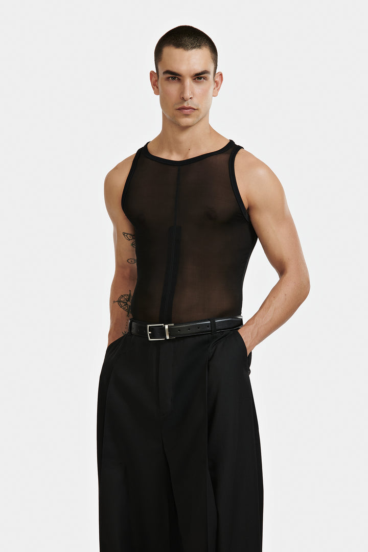Débardeur près du corps inspiré du collant confectionné dans un jersey de cupro transparent et satiné.