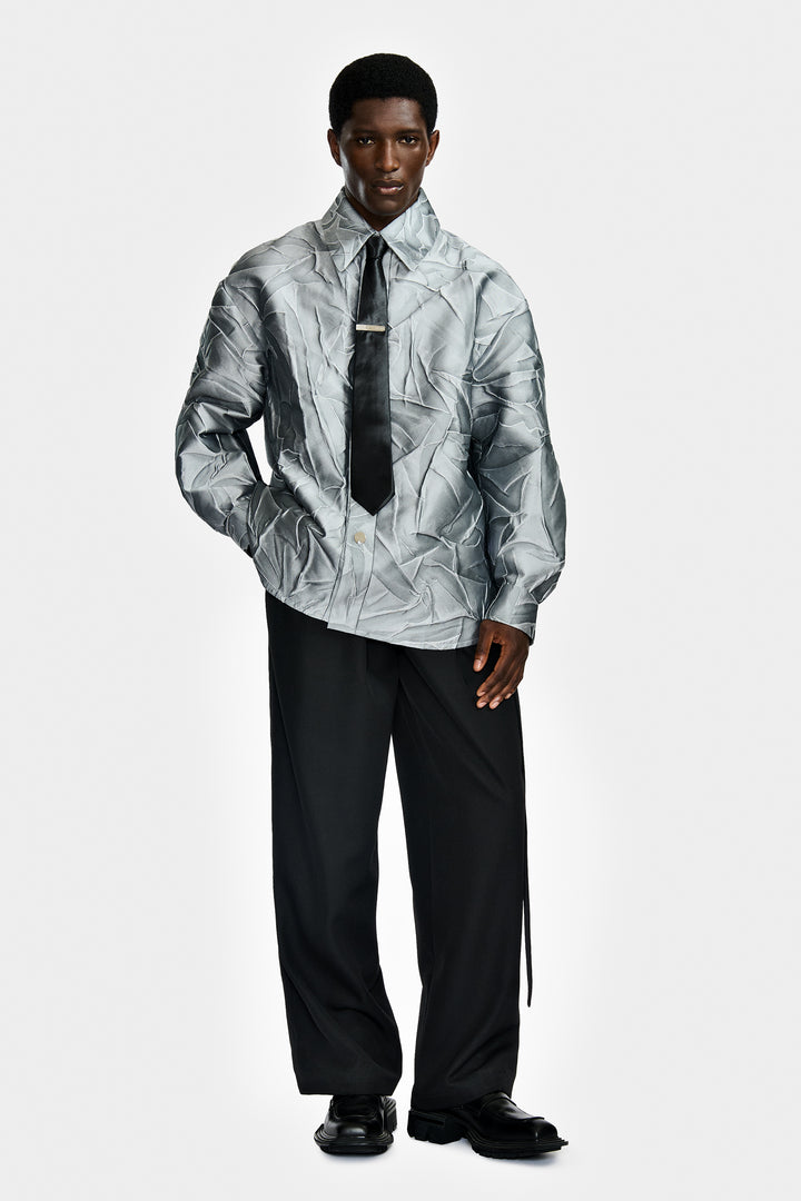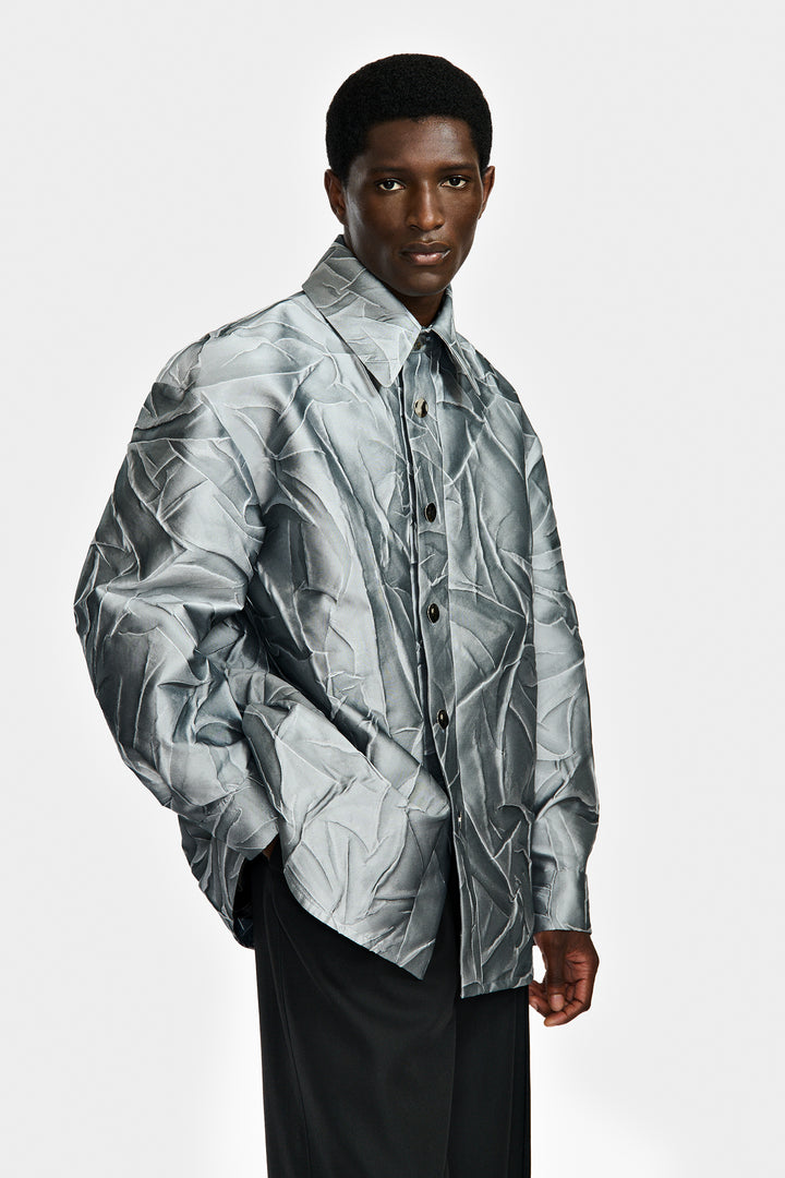 Surchemise doublée confectionnée dans un tissu en jacquard avec relief à motif "Car Crash".