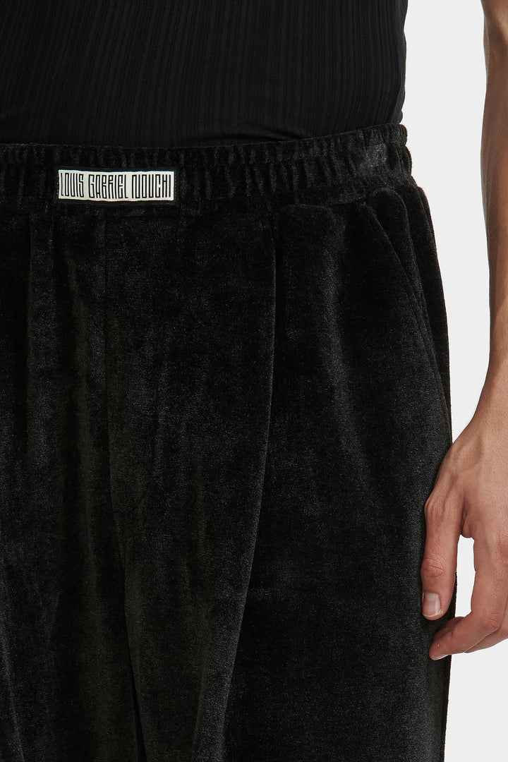 Pantalon large style pyjama avec ceinture élastiquée confectionnée en jersey de velours.