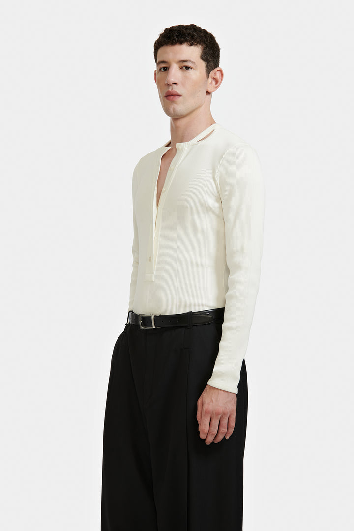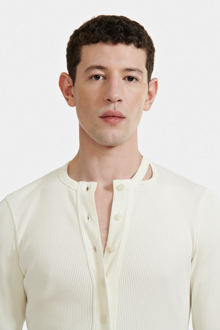 T-SHIRT MANCHES LONGUES BOUTONNÉ BONE